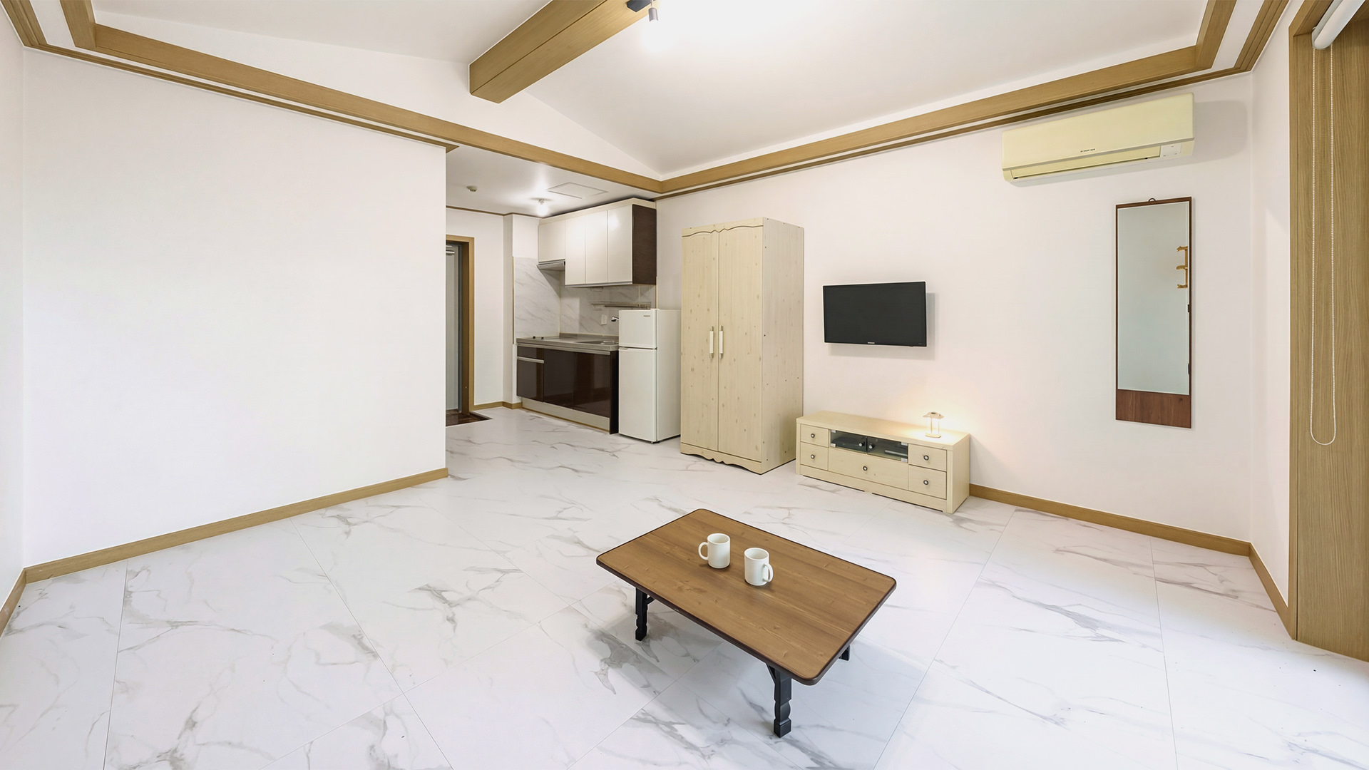- 집기품목 : 욕실용품, 남녀공용, TV, 금연, 냉장고, 에어컨, 취사시설/도구, 커피포트, 전자레인지, 인덕션