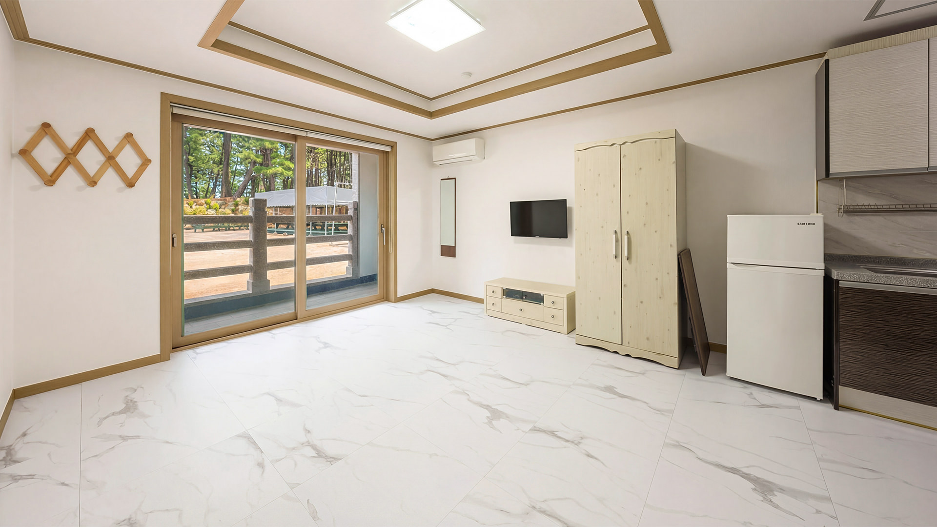 - 집기품목 : 욕실용품, 남녀공용, TV, 금연, 냉장고, 에어컨, 취사시설/도구, 커피포트, 전자레인지, 인덕션