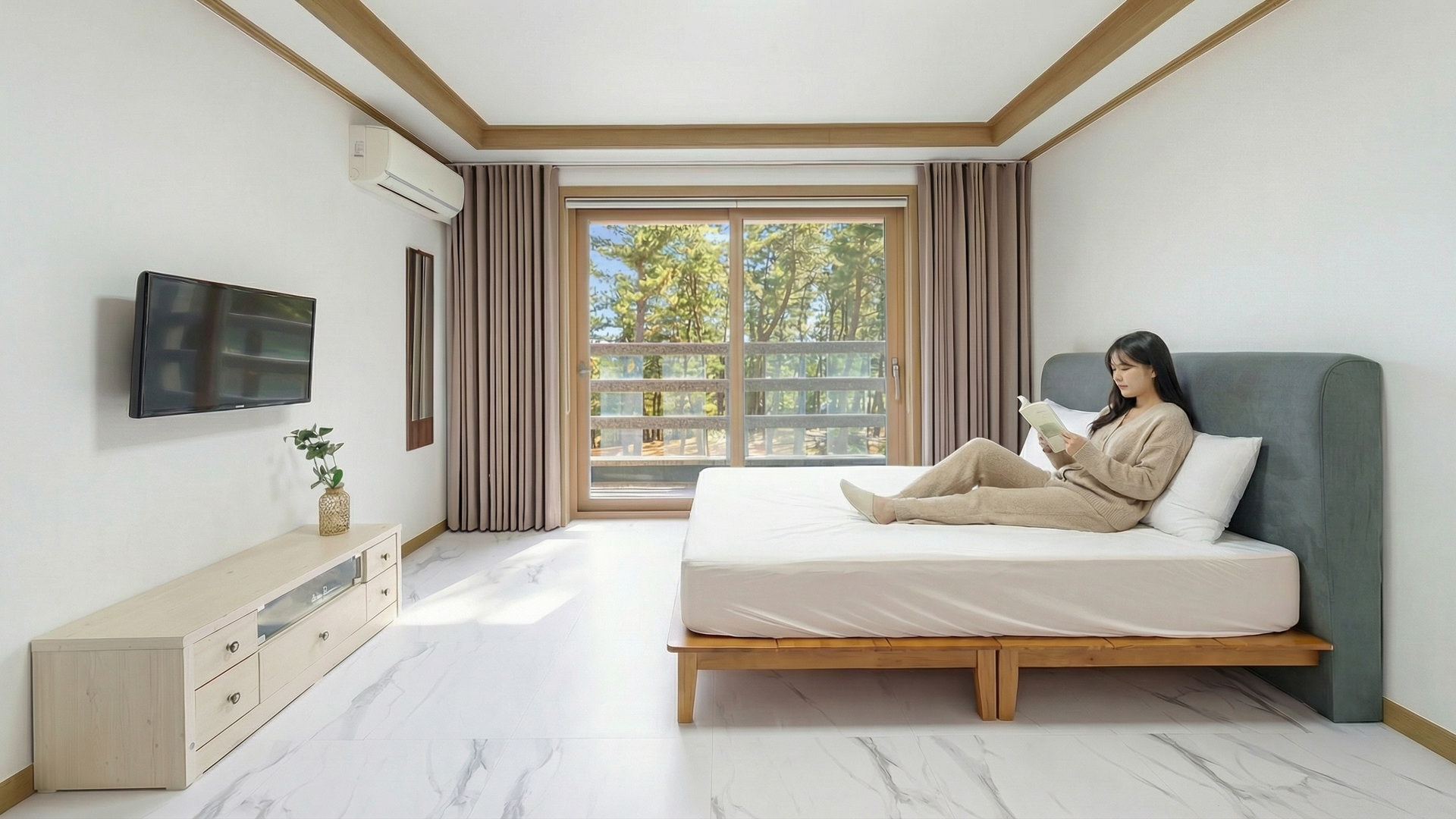 - 집기품목 : 욕실용품, 남녀공용, TV, 금연, 냉장고, 에어컨, 취사시설/도구, 커피포트, 전자레인지, 인덕션, 바다전망